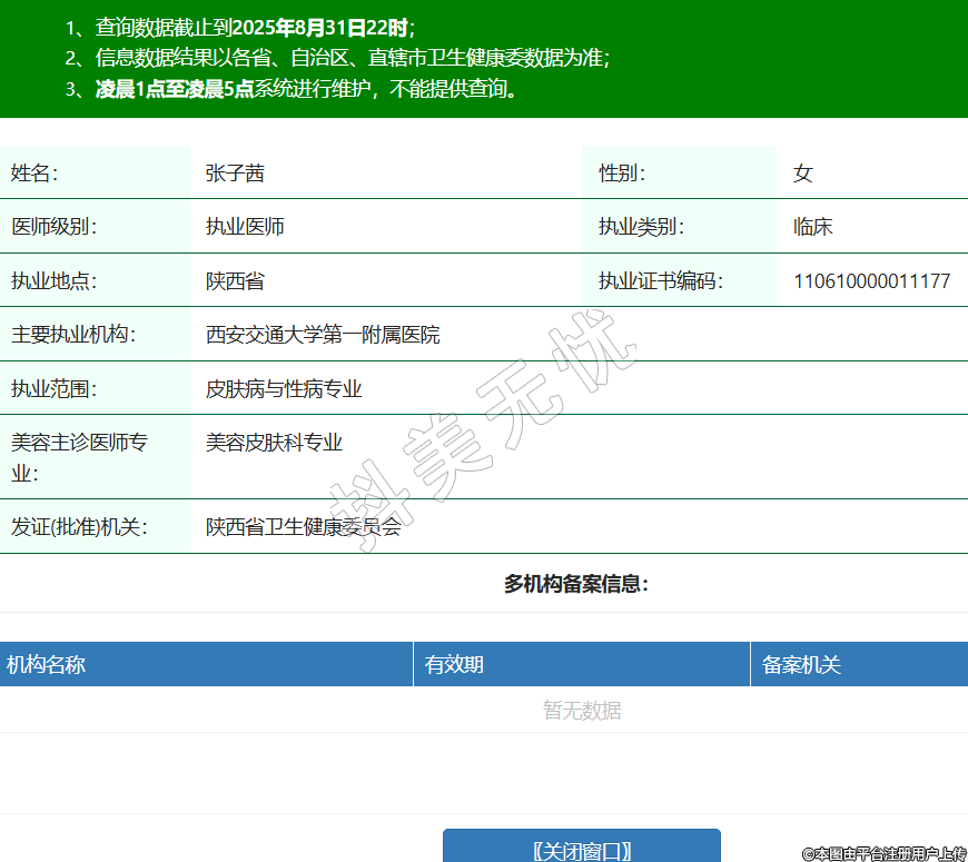 姓名:張子茜性別:女醫(yī)師級別:執(zhí)業(yè)醫(yī)師執(zhí)業(yè)類別:臨床執(zhí)業(yè)地點:陜西省執(zhí)業(yè)證書編碼:110610000011177主要執(zhí)業(yè)機構(gòu):西安交通大學第一附屬醫(yī)院執(zhí)業(yè)范圍:皮膚病與性病專業(yè)美容主診醫(yī)師專業(yè):美容皮膚科專業(yè)發(fā)證(批準)機關(guān):陜西省衛(wèi)生健康委員會 -