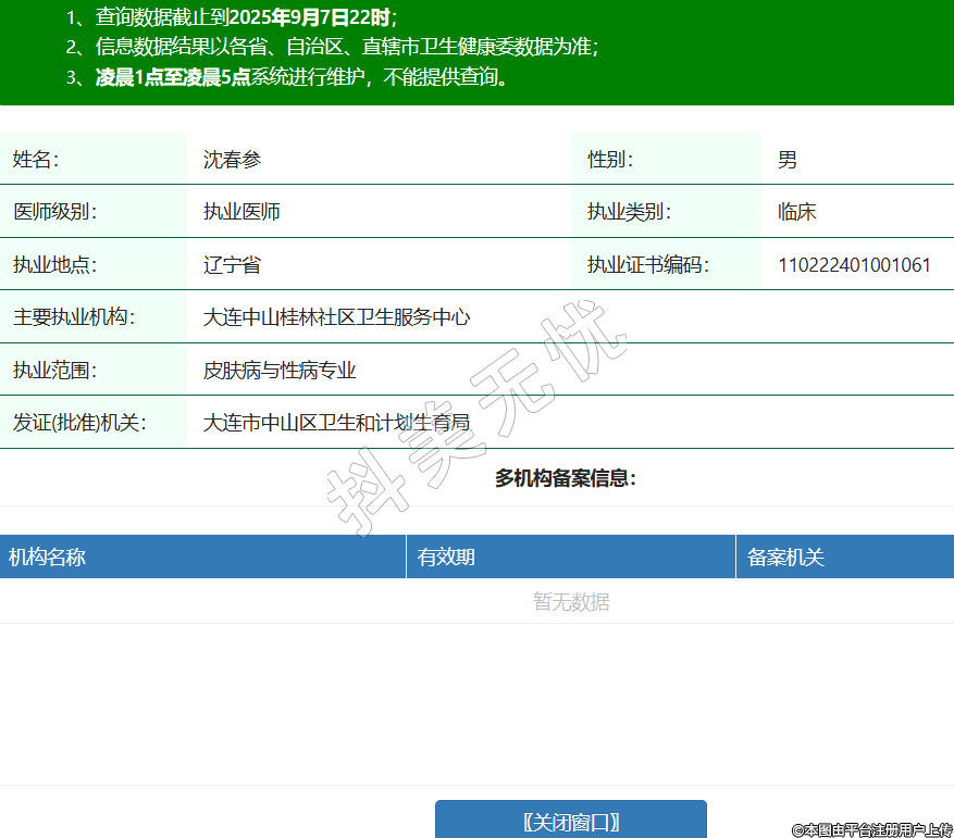 姓名:沈春參性別:男醫(yī)師級(jí)別:執(zhí)業(yè)醫(yī)師執(zhí)業(yè)類(lèi)別:臨床執(zhí)業(yè)地點(diǎn):遼寧省執(zhí)業(yè)證書(shū)編碼:110222401001061主要執(zhí)業(yè)機(jī)構(gòu):大連中山桂林社區(qū)衛(wèi)生服務(wù)中心執(zhí)業(yè)范圍:皮膚病與性病專(zhuān)業(yè)發(fā)證(批準(zhǔn))機(jī)關(guān):大連市中山區(qū)衛(wèi)生和計(jì)劃生育局 -