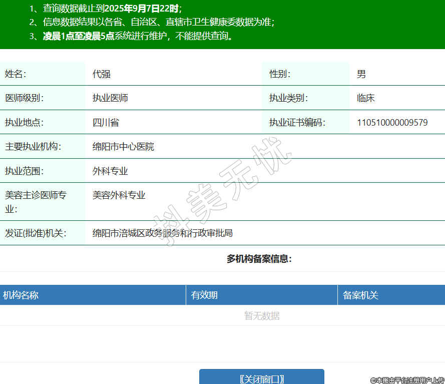 姓名:代強(qiáng)性別:男醫(yī)師級別:執(zhí)業(yè)醫(yī)師執(zhí)業(yè)類別:臨床執(zhí)業(yè)地點(diǎn):四川省執(zhí)業(yè)證書編碼:110510000009579主要執(zhí)業(yè)機(jī)構(gòu):綿陽市中心醫(yī)院執(zhí)業(yè)范圍:外科專業(yè)美容主診醫(yī)師專業(yè):美容外科專業(yè)發(fā)證(批準(zhǔn))機(jī)關(guān):綿陽市涪城區(qū)政務(wù)服務(wù)和行政審批局 -