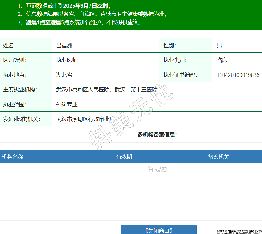 姓名:呂福洲性別:男醫(yī)師級別:執(zhí)業(yè)醫(yī)師執(zhí)業(yè)類別:臨床執(zhí)業(yè)地點(diǎn):湖北省執(zhí)業(yè)證書編碼:110420100019836主要執(zhí)業(yè)機(jī)構(gòu):武漢市蔡甸區(qū)人民醫(yī)院,武漢市第十三醫(yī)院執(zhí)業(yè)范圍:外科專業(yè)發(fā)證(批準(zhǔn))機(jī)關(guān):武漢市蔡甸區(qū)行政審批局 -