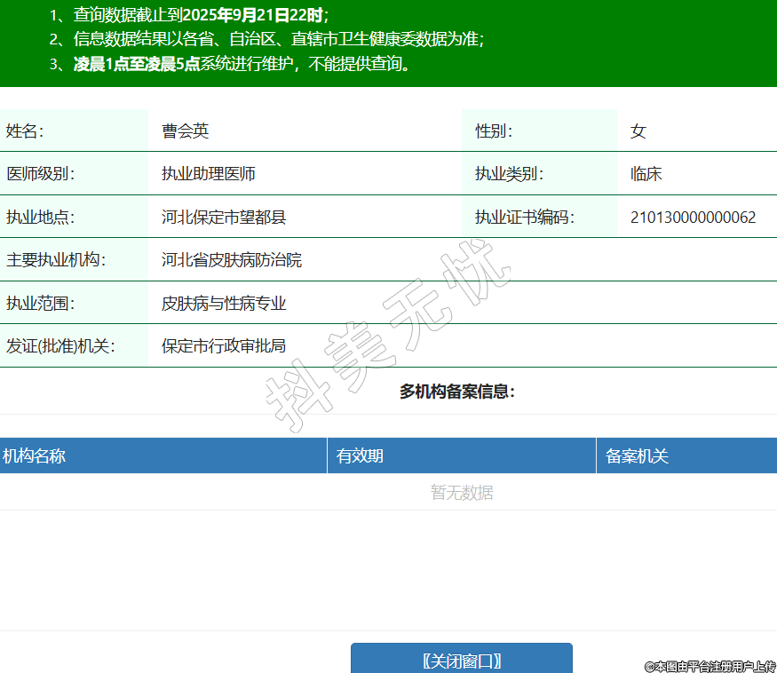姓名:曹會(huì)英性別:女醫(yī)師級(jí)別:執(zhí)業(yè)助理醫(yī)師執(zhí)業(yè)類別:臨床執(zhí)業(yè)地點(diǎn):河北保定市望都縣執(zhí)業(yè)證書編碼:210130000000062主要執(zhí)業(yè)機(jī)構(gòu):河北省皮膚病防治院執(zhí)業(yè)范圍:皮膚病與性病專業(yè)發(fā)證(批準(zhǔn))機(jī)關(guān):保定市行政審批局 -