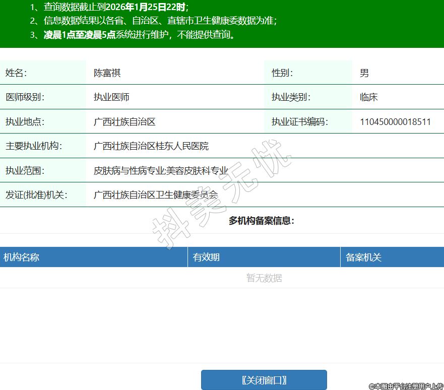 姓名:陳富祺性別:男醫(yī)師級(jí)別:執(zhí)業(yè)醫(yī)師執(zhí)業(yè)類別:臨床執(zhí)業(yè)地點(diǎn):廣西壯族自治區(qū)執(zhí)業(yè)證書編碼:110450000018511主要執(zhí)業(yè)機(jī)構(gòu):廣西壯族自治區(qū)桂東人民醫(yī)院執(zhí)業(yè)范圍:皮膚病與性病專業(yè);美容皮膚科專業(yè)發(fā)證(批準(zhǔn))機(jī)關(guān):廣西壯族自治區(qū)衛(wèi)生健康委員會(huì) -