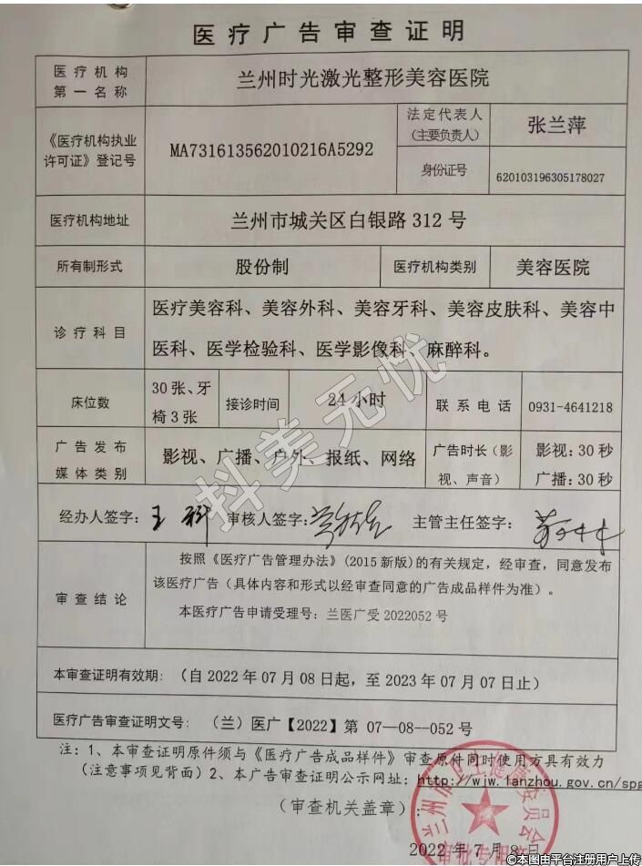 機構(gòu)名稱:蘭州時光激光整形美容醫(yī)院