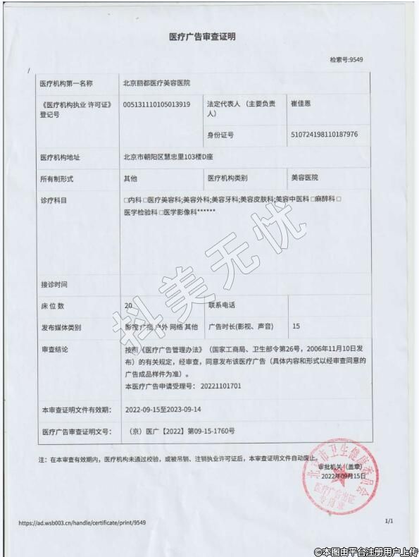 發(fā)證機(jī)關(guān):北京市朝陽區(qū)衛(wèi)生和計(jì)劃生育委員會(huì)