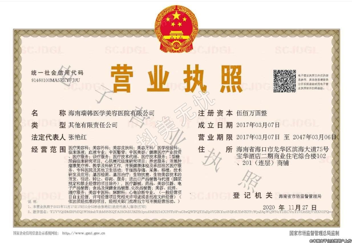 機(jī)構(gòu)名稱:海南瑞韓醫(yī)學(xué)美容醫(yī)院