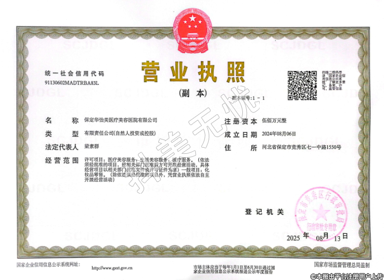 醫(yī)療機(jī)構(gòu)名稱:保定華怡美醫(yī)療美容醫(yī)院