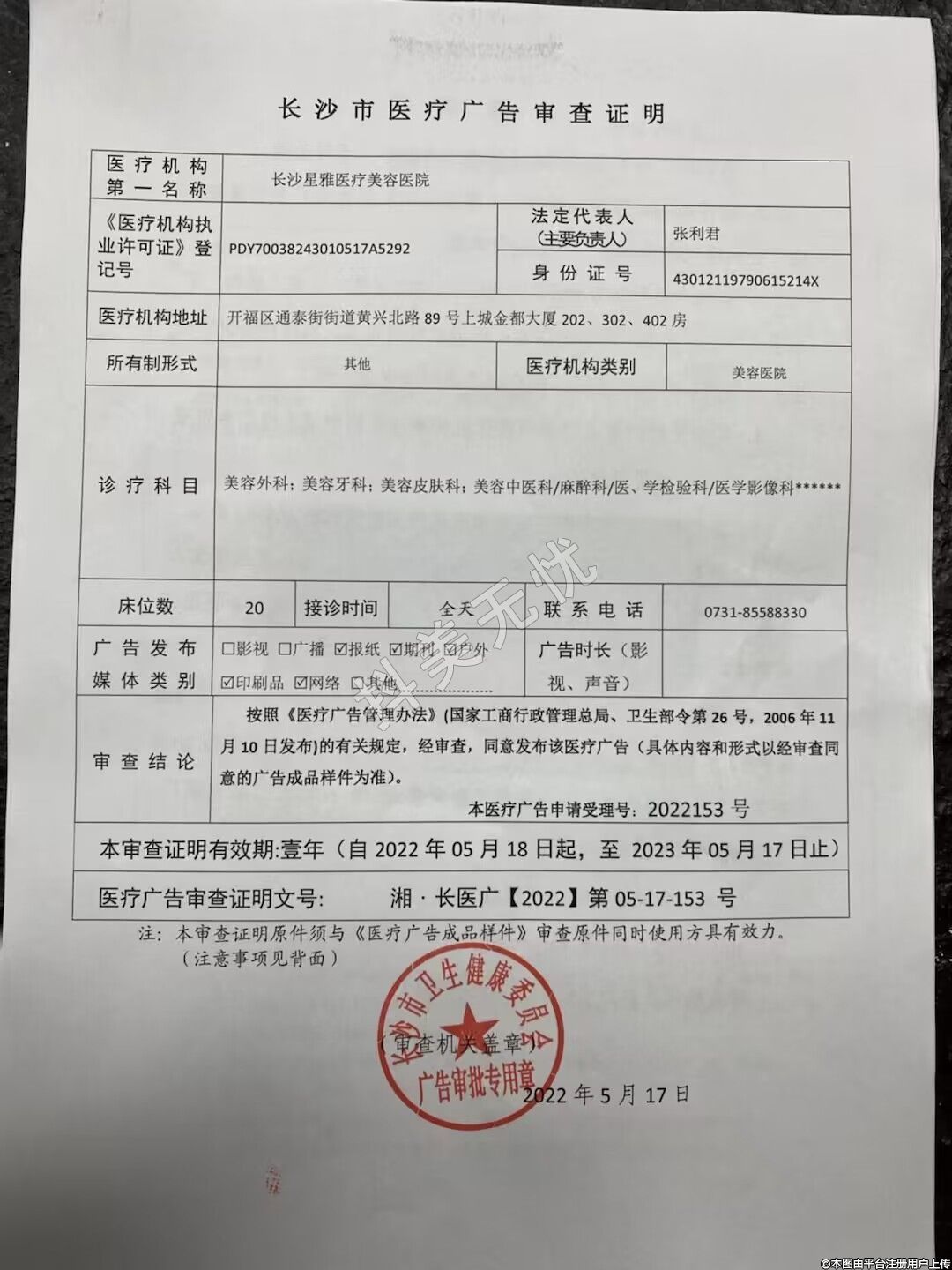 發(fā)證機關(guān):長沙市衛(wèi)生健康委員會