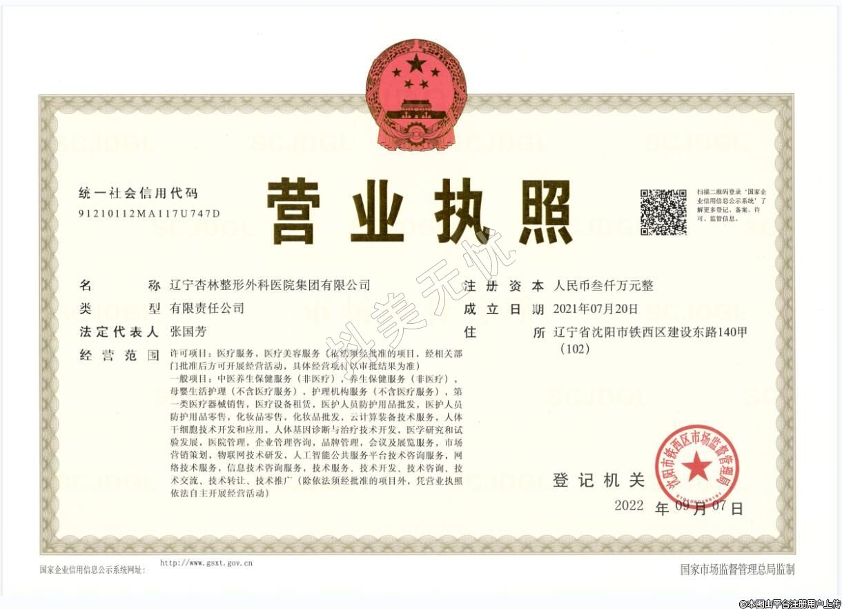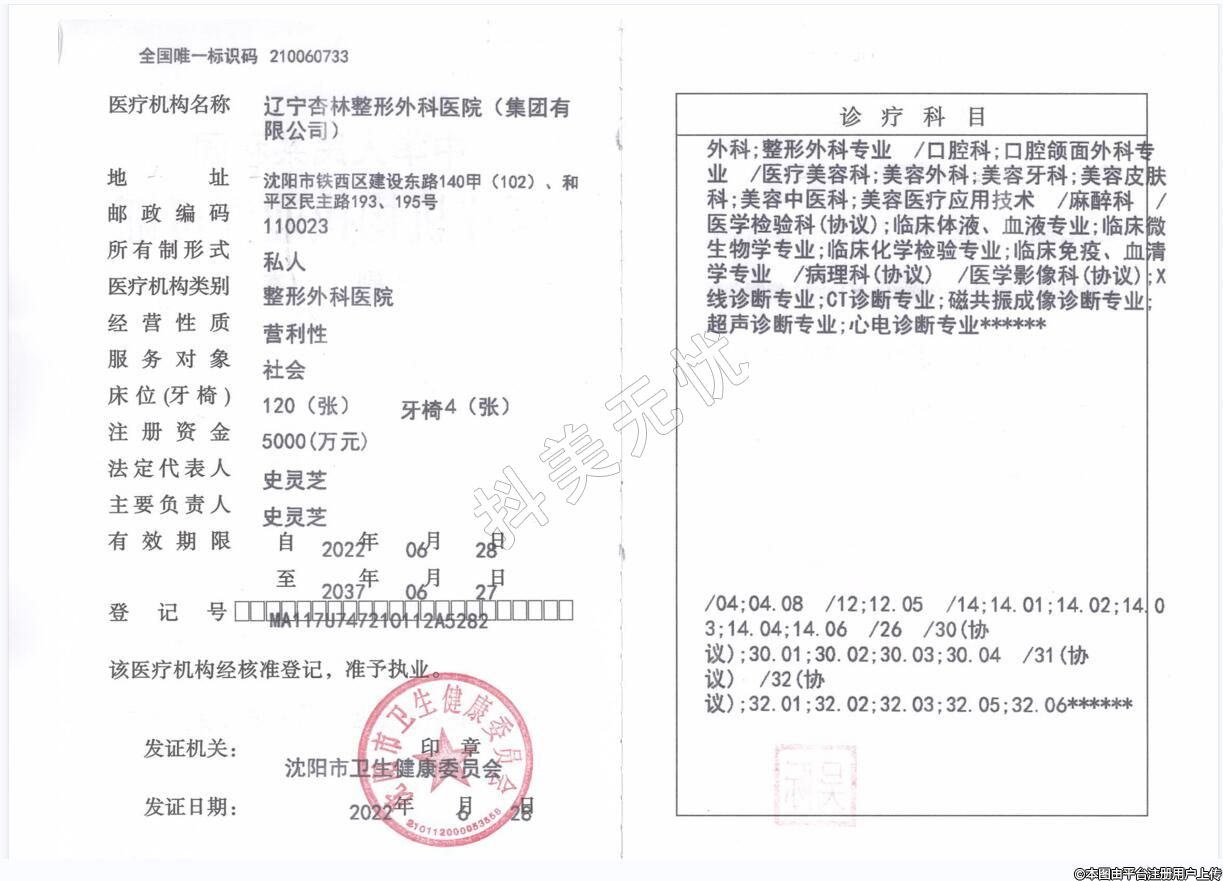 醫(yī)療機(jī)構(gòu)名稱:遼寧杏 林整形外科醫(yī)院(集團(tuán)有限公司)