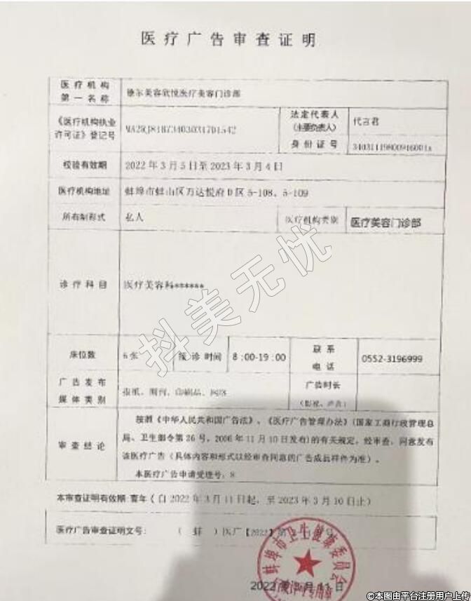 發(fā)證機(jī)關(guān):蚌埠市蚌山區(qū)衛(wèi)生健康委員會(huì)