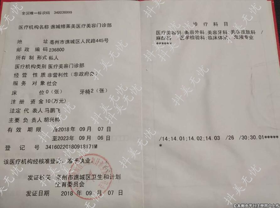 發(fā)證機關(guān):亳州市譙城區(qū)衛(wèi)生和計劃生育委員會