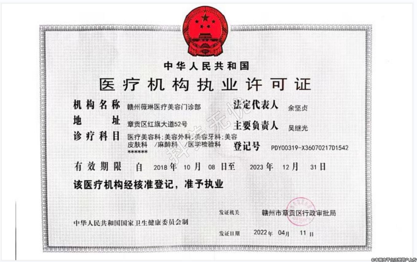 機(jī)構(gòu)名稱:贛州薇琳醫(yī)療美容門診部