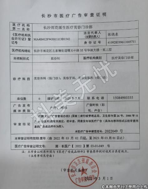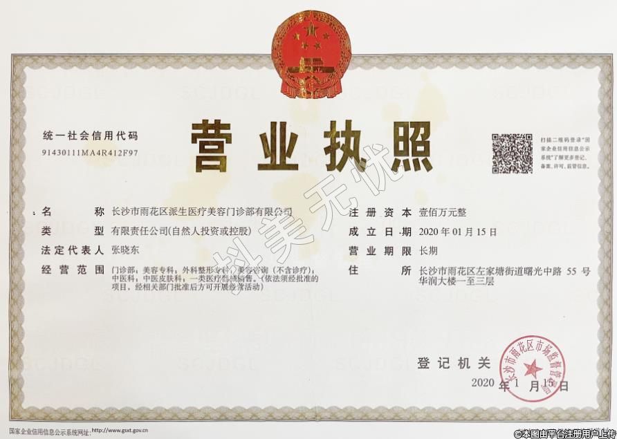 發(fā)證機關:長沙市雨花區(qū)衛(wèi)生健康局