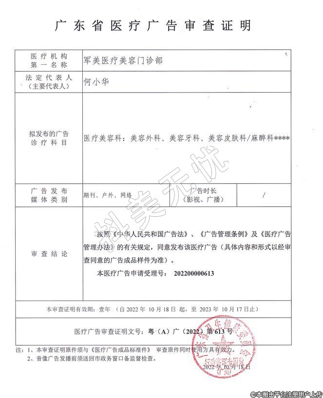 機(jī)構(gòu)名稱(chēng):軍美醫(yī)療美容門(mén)診部