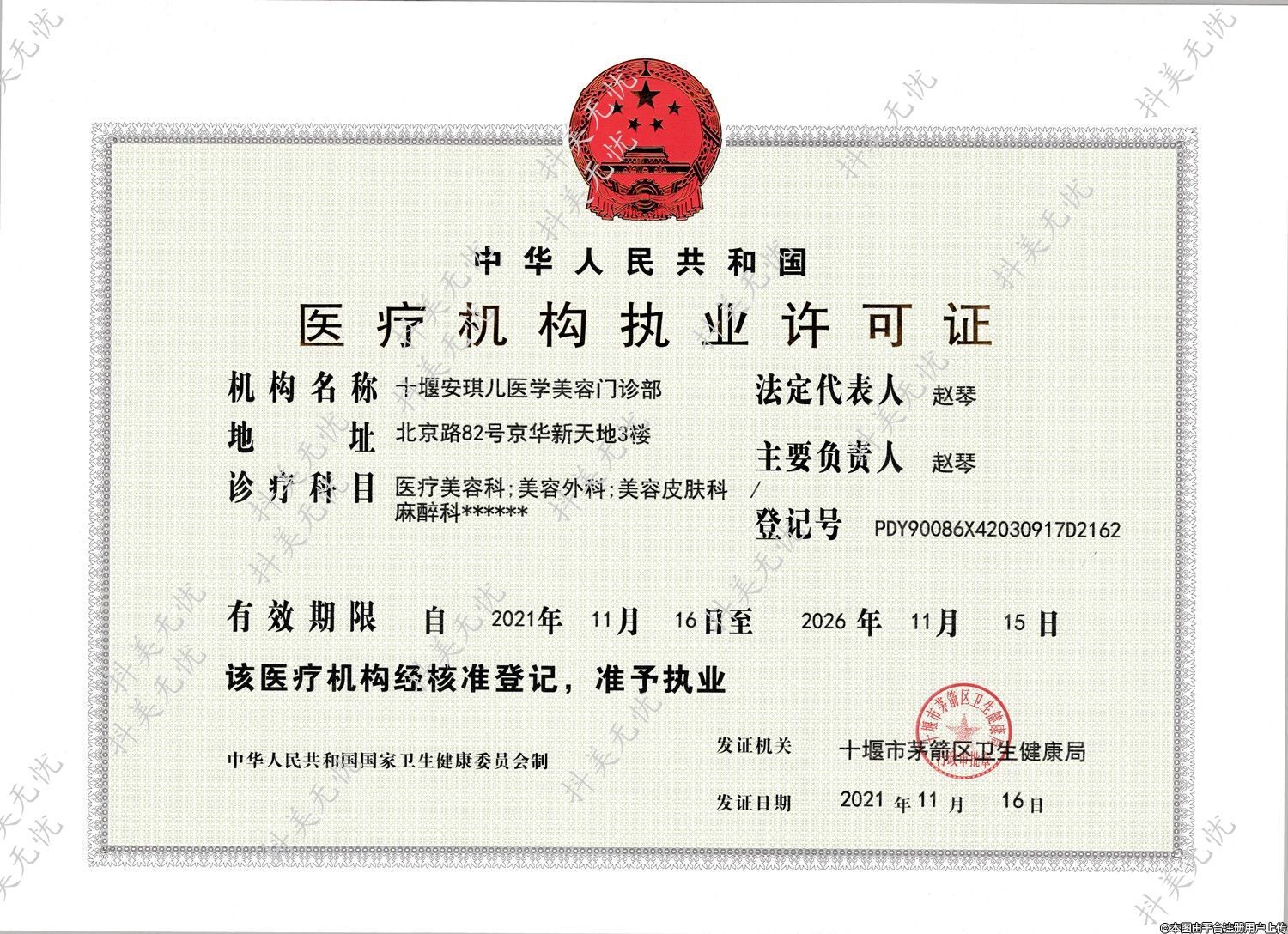 發(fā)證機關(guān):十堰市茅箭區(qū)衛(wèi)生健康局