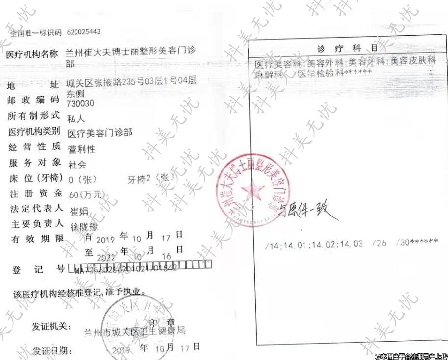 醫(yī)療機構(gòu)名稱:蘭州崔大夫博士麗整形美容門診部