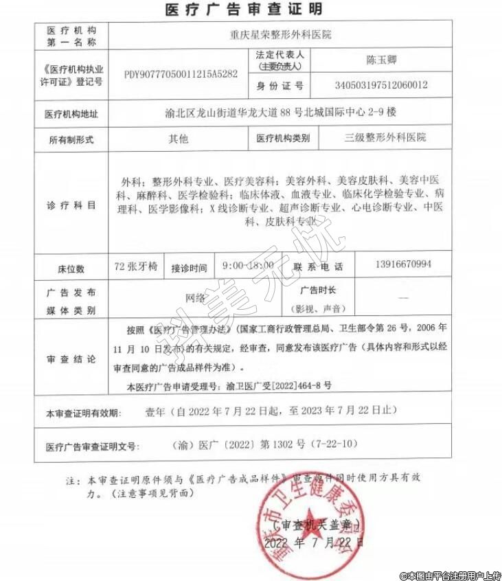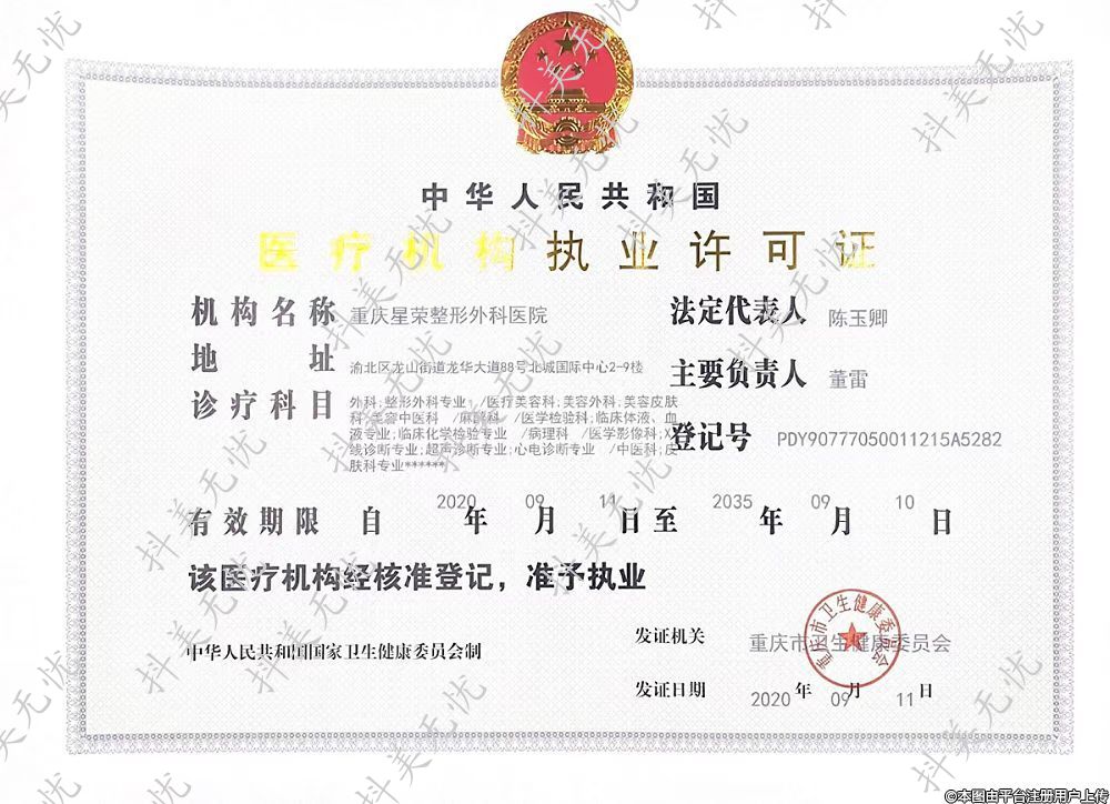 醫(yī)療機構名稱:重慶星榮整形外科醫(yī)院