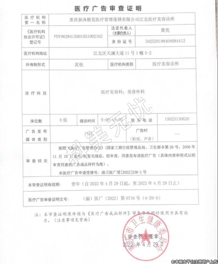 醫(yī)療機構名稱:重慶新沐醫(yī)療美容連鎖有限公司江北醫(yī)療美容診所