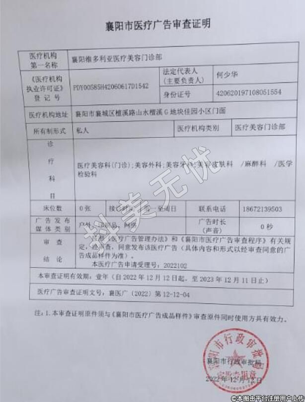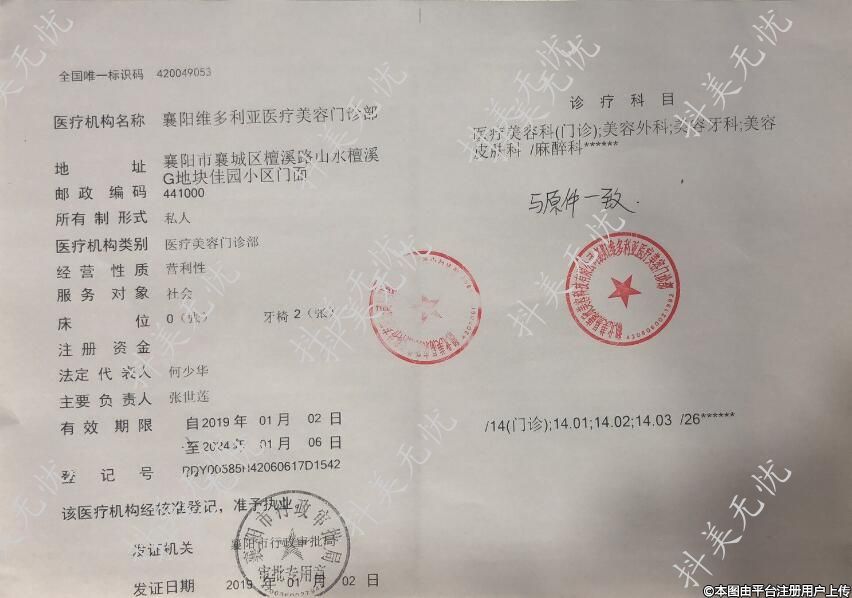 醫(yī)療機(jī)構(gòu)名稱:襄陽維多利亞醫(yī)療美容門診部
