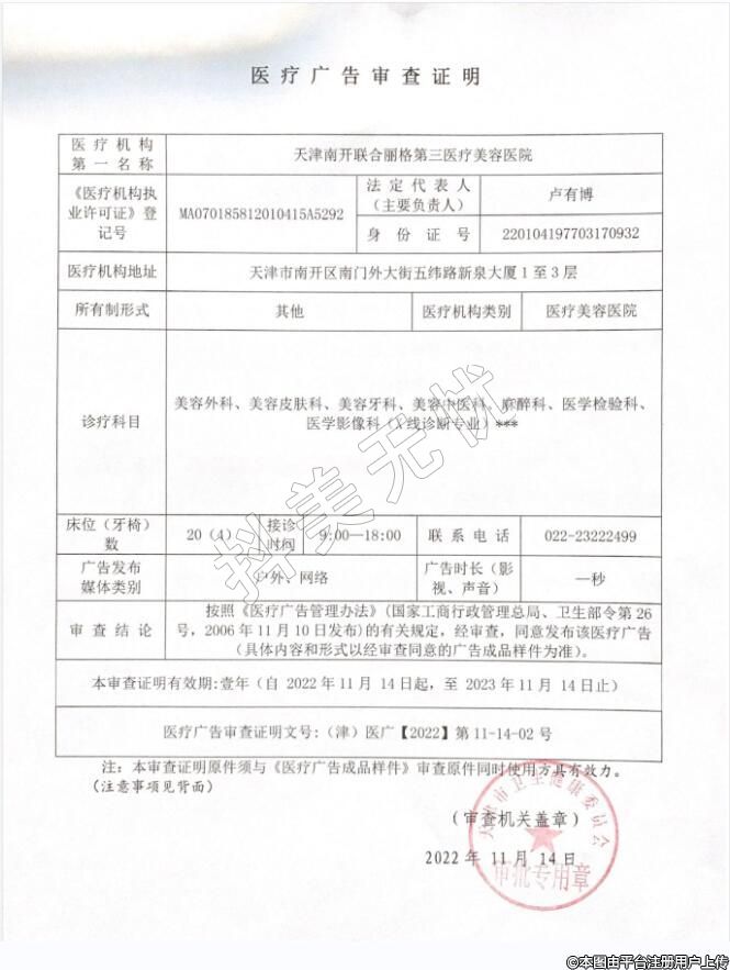 機構名稱:天津南開聯(lián)合麗格第三醫(yī)療美容醫(yī)院