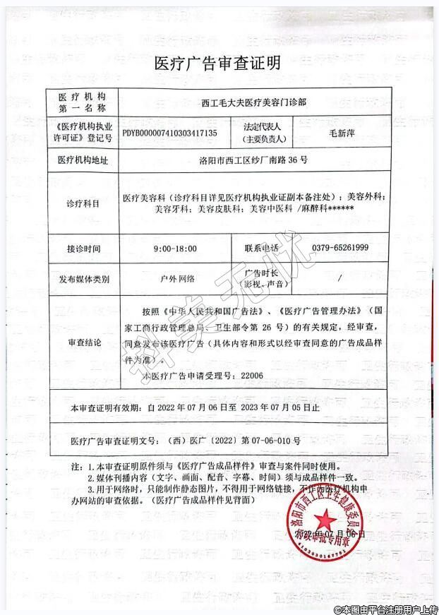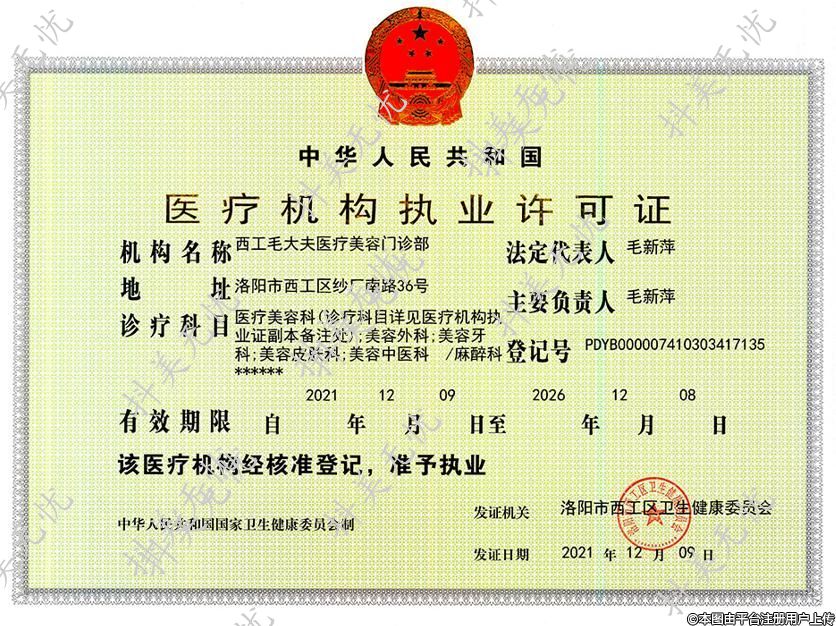 發(fā)證機關(guān):洛陽市西工區(qū)衛(wèi)生健康委員會