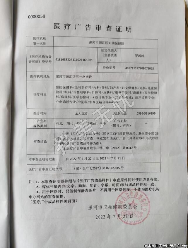 發(fā)證機(jī)關(guān):源匯區(qū)衛(wèi)生健康委員會(huì)
