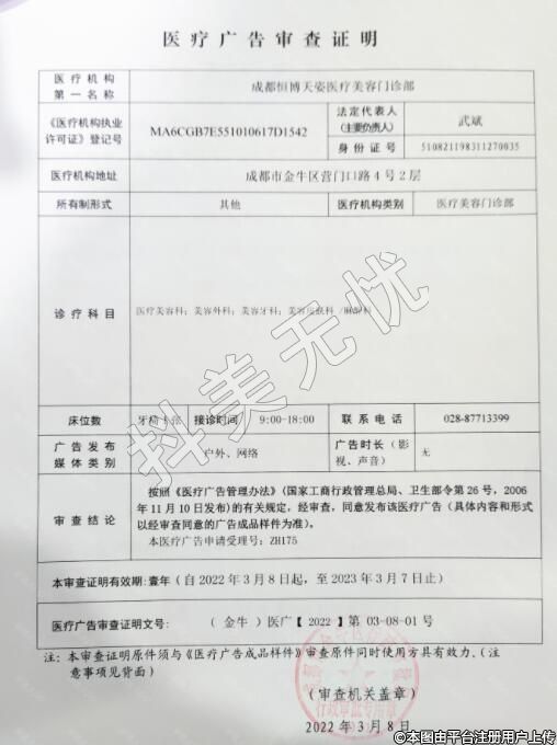 機構名稱:成都恒博天姿醫(yī)療美容門診部