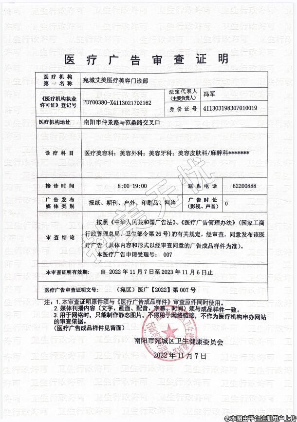 機(jī)構(gòu)名稱:宛城艾美醫(yī)療美容門診部