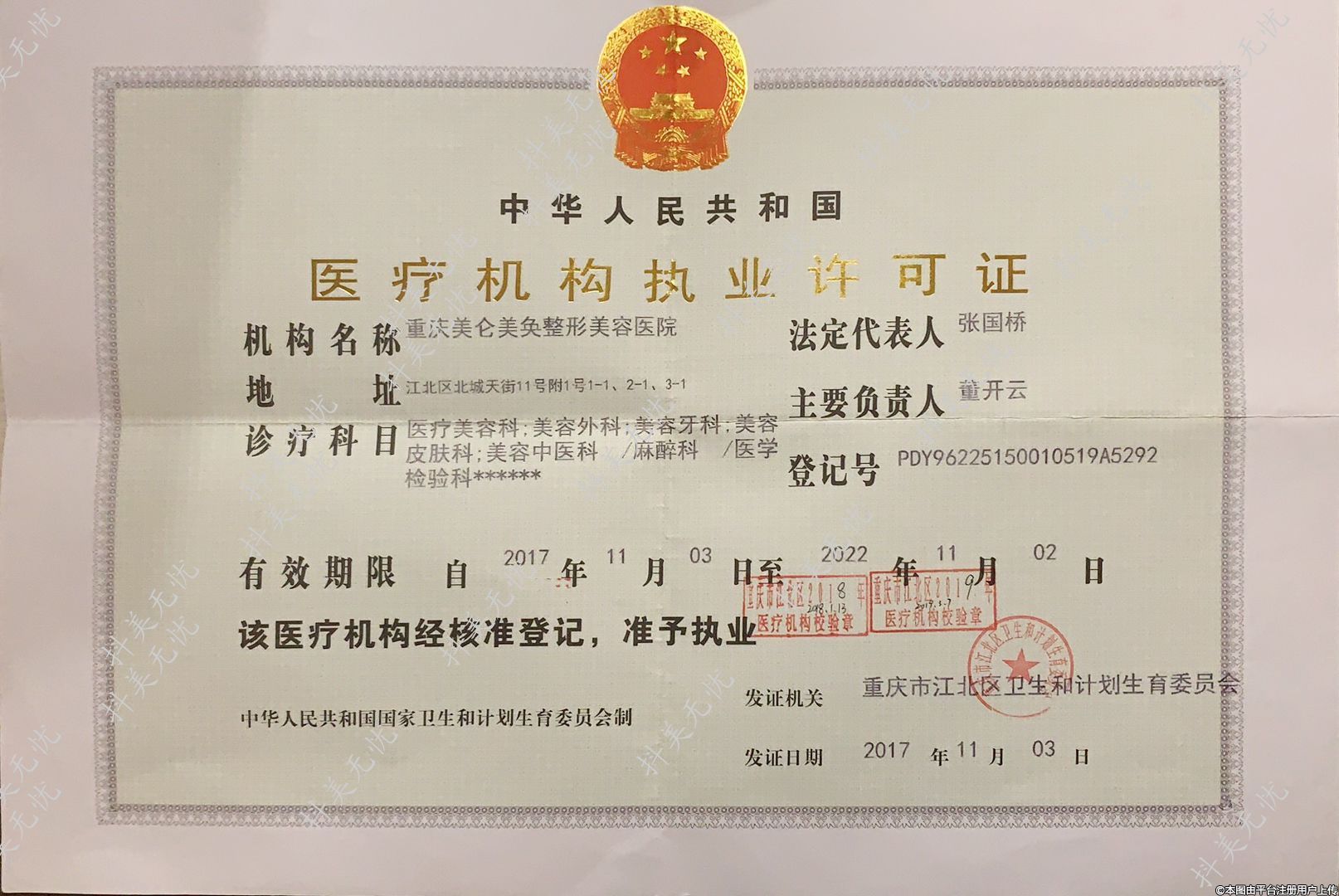 發(fā)證機(jī)關(guān):重慶市江北區(qū)衛(wèi)生和計(jì)劃生育委員會(huì)