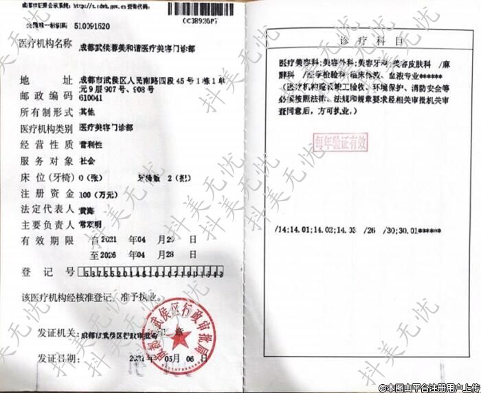 醫(yī)療機(jī)構(gòu)名稱:成都武侯蓉美和諧醫(yī)療美容門診部