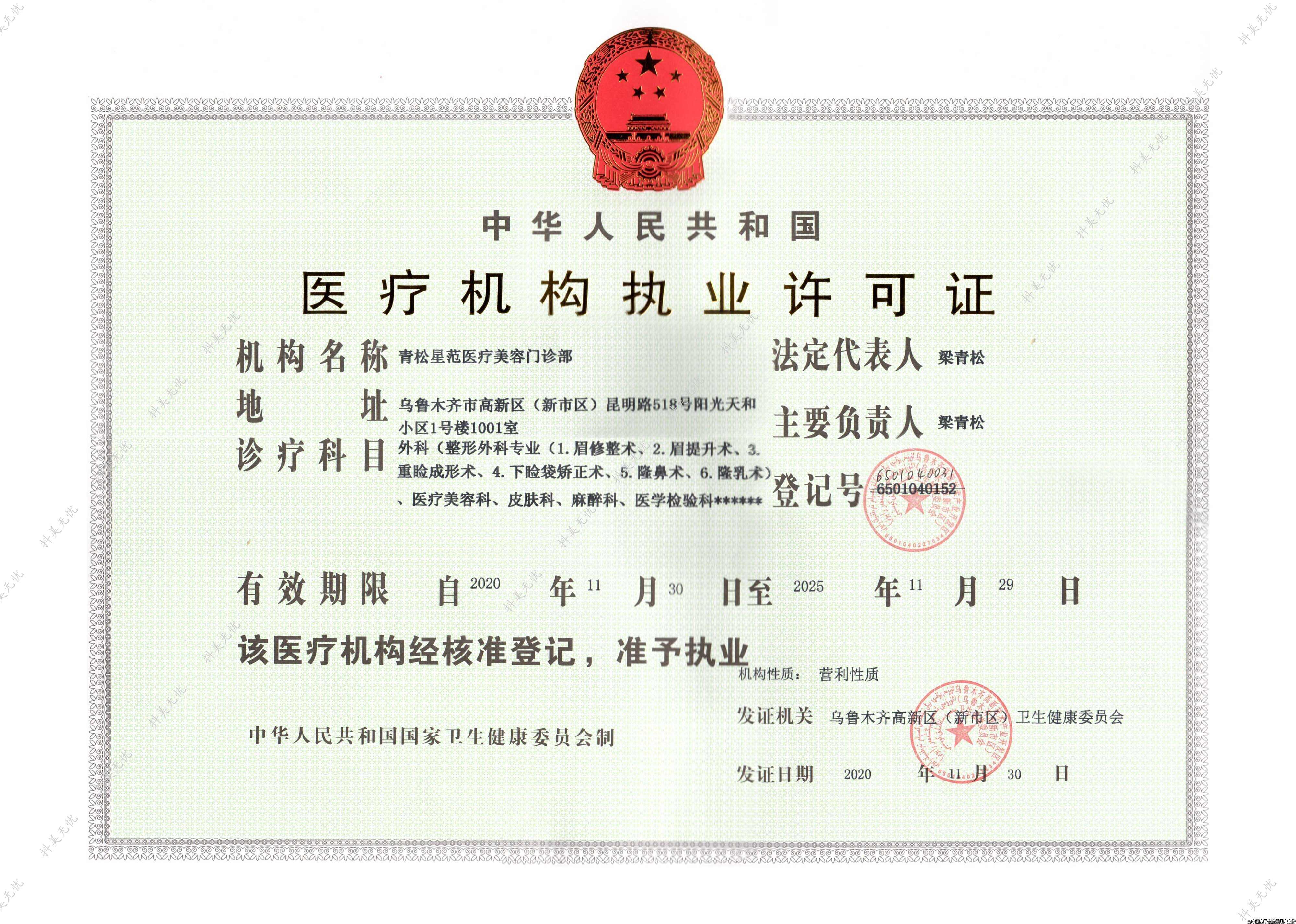 發(fā)證機關(guān):烏魯木齊高新區(qū)(新市區(qū))衛(wèi)生健康委員會