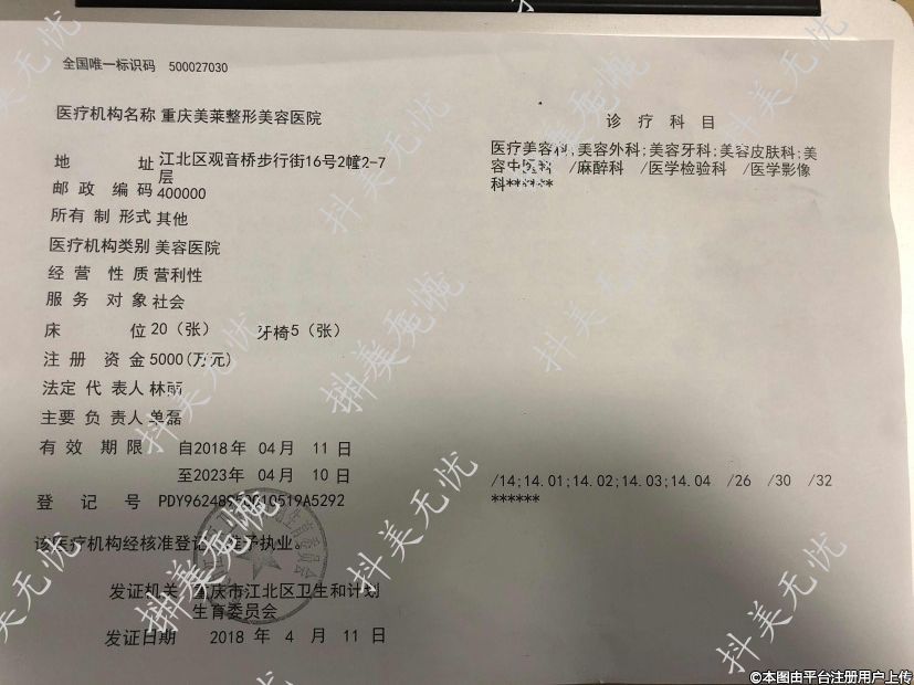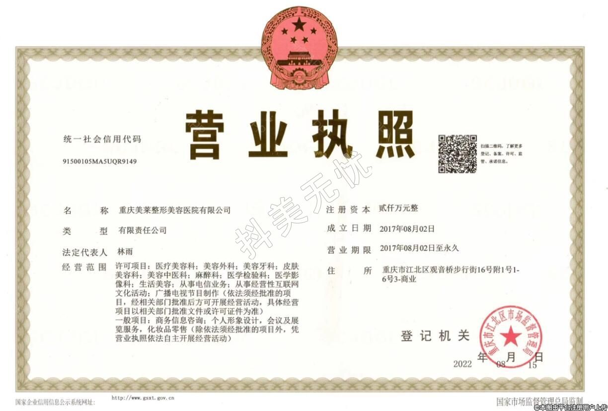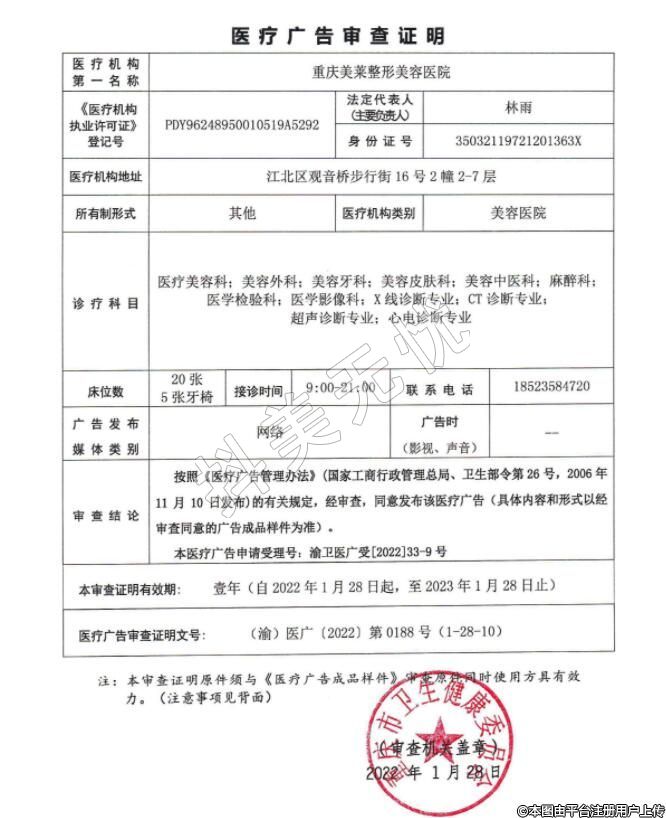 醫(yī)療機構名稱:重慶美萊整形外科醫(yī)院