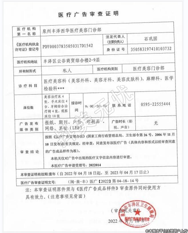 機(jī)構(gòu)名稱:泉州豐澤西華醫(yī)療美容門診部