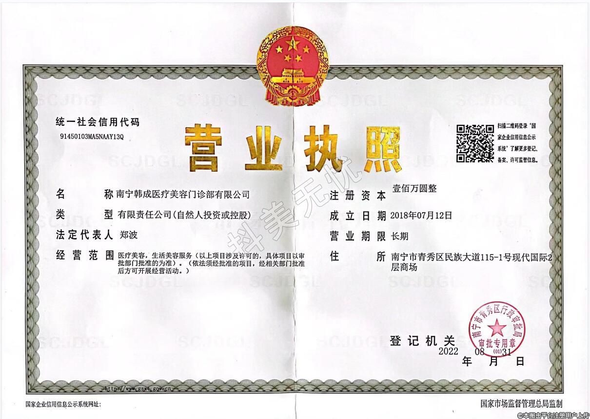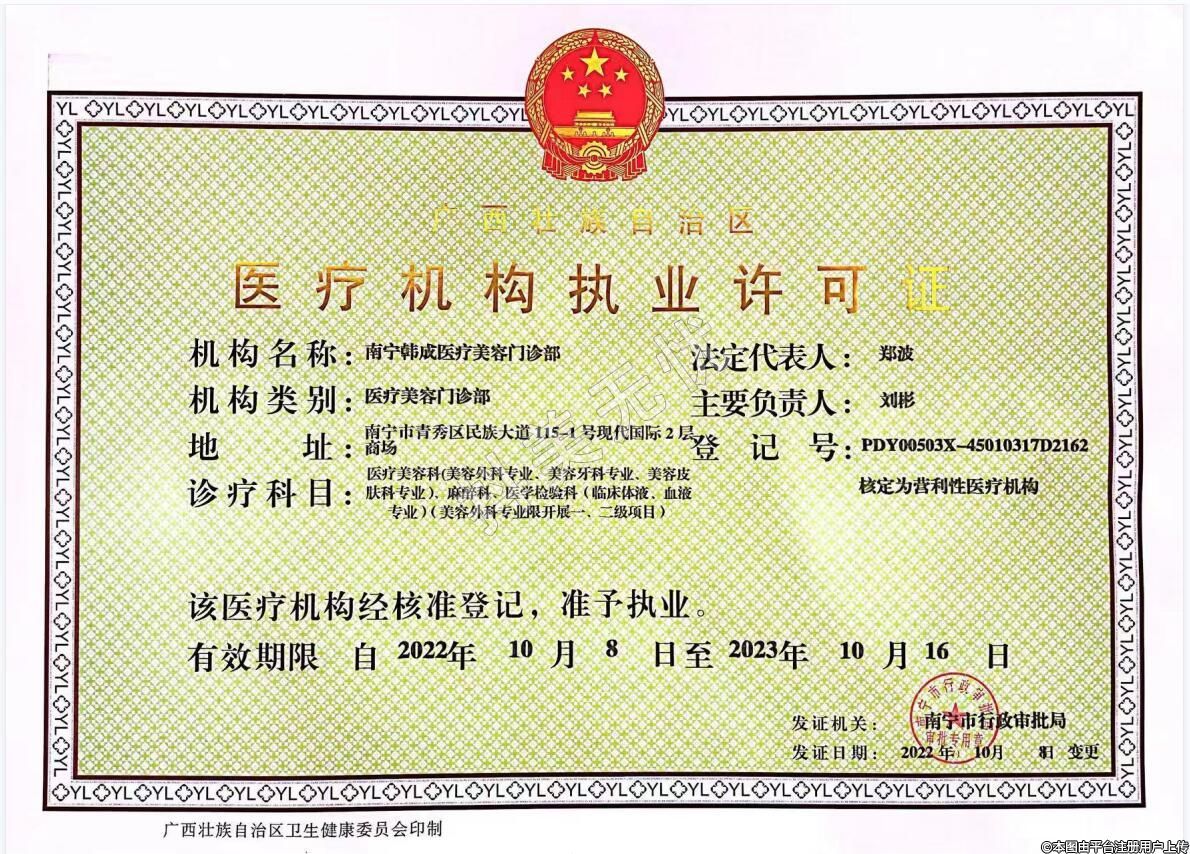 醫(yī)療機(jī)構(gòu)名稱(chēng):南寧韓成醫(yī)療美容門(mén)診部