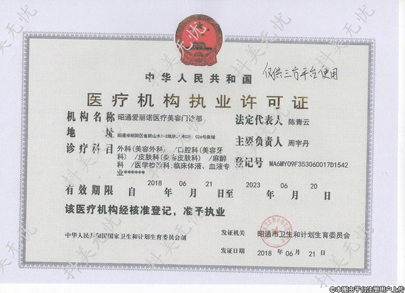 機構(gòu)名稱:昭通愛麗諾醫(yī)療美容門診部
