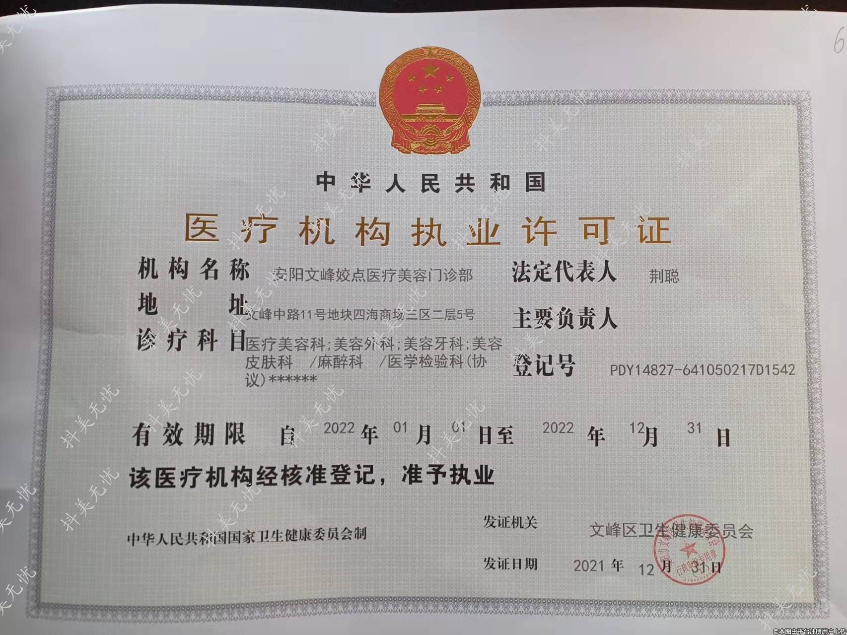 機(jī)構(gòu)名稱:安陽文峰姣點(diǎn)醫(yī)療美容門診部