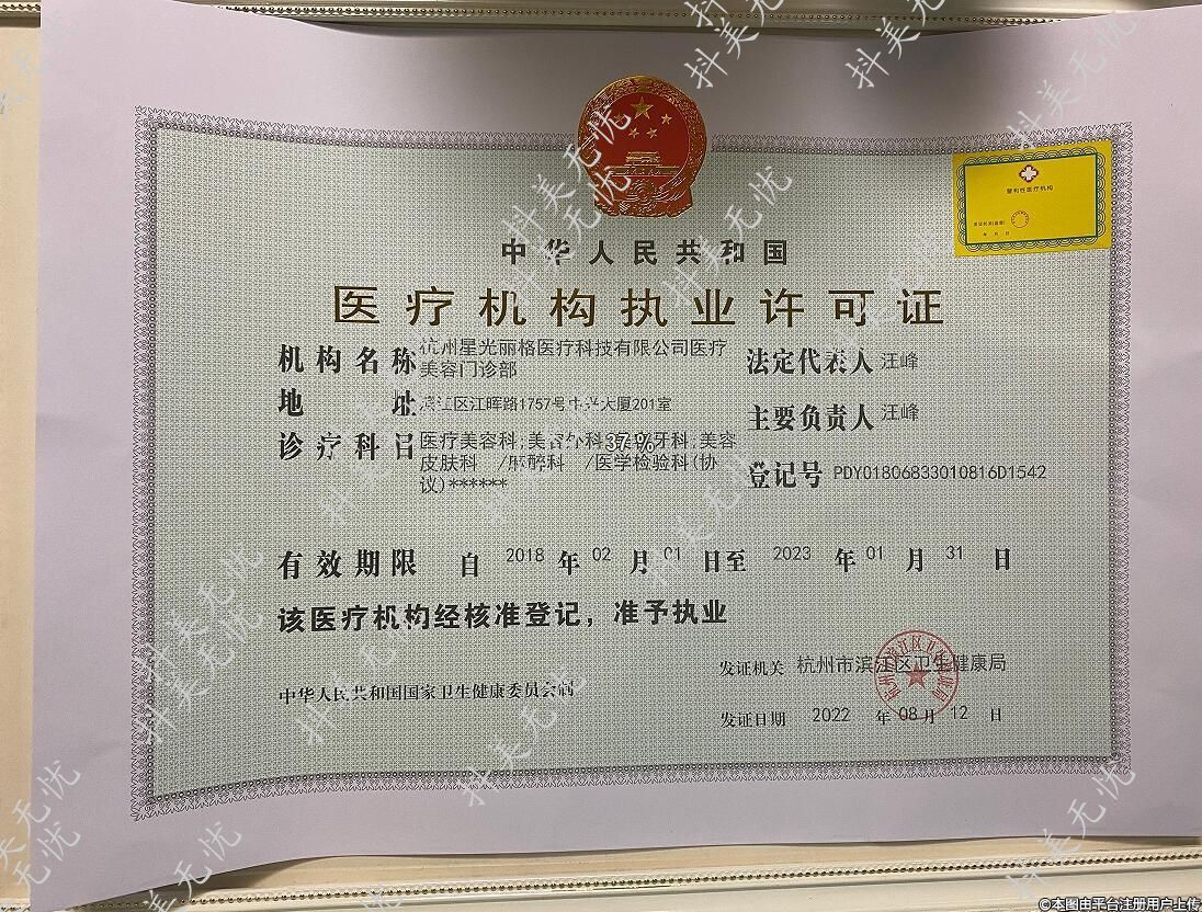 機(jī)構(gòu)名稱:杭州星光麗格醫(yī)療科撥有限公司醫(yī)療美容門診部