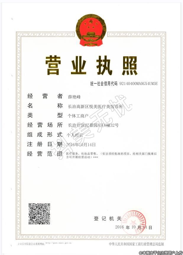 長治悅美醫(yī)療美容是經(jīng)長治衛(wèi)計委及長治市高新區(qū)衛(wèi)計委批準(zhǔn)設(shè)立的一所正規(guī)醫(yī)療整形美容機構(gòu)。