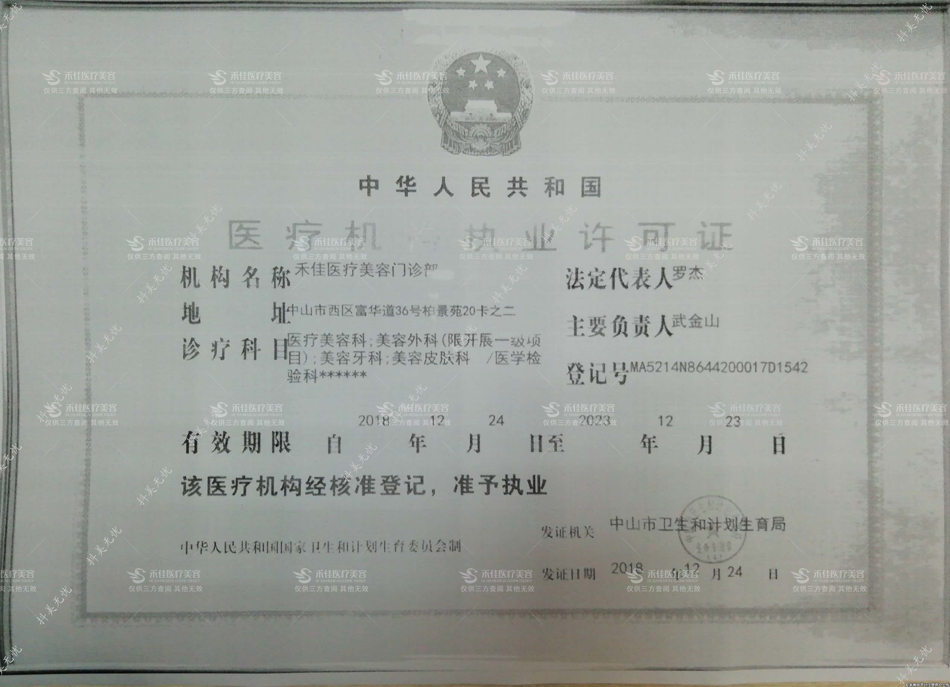 發(fā)證機關(guān):中山市衛(wèi)生和計劃生育局