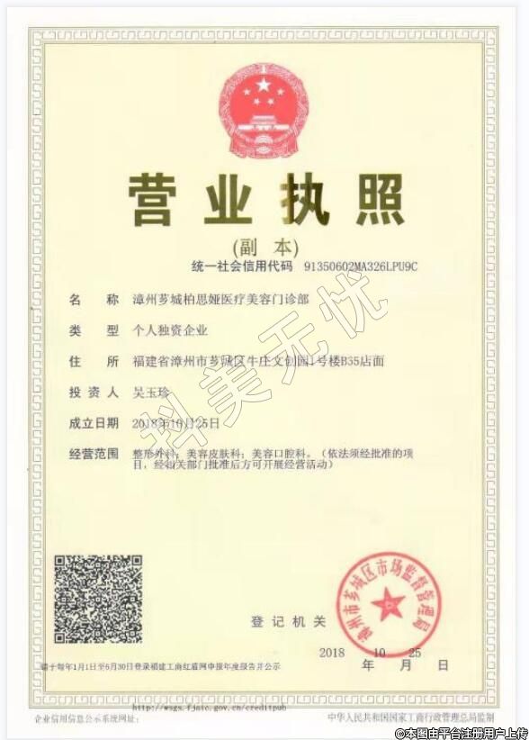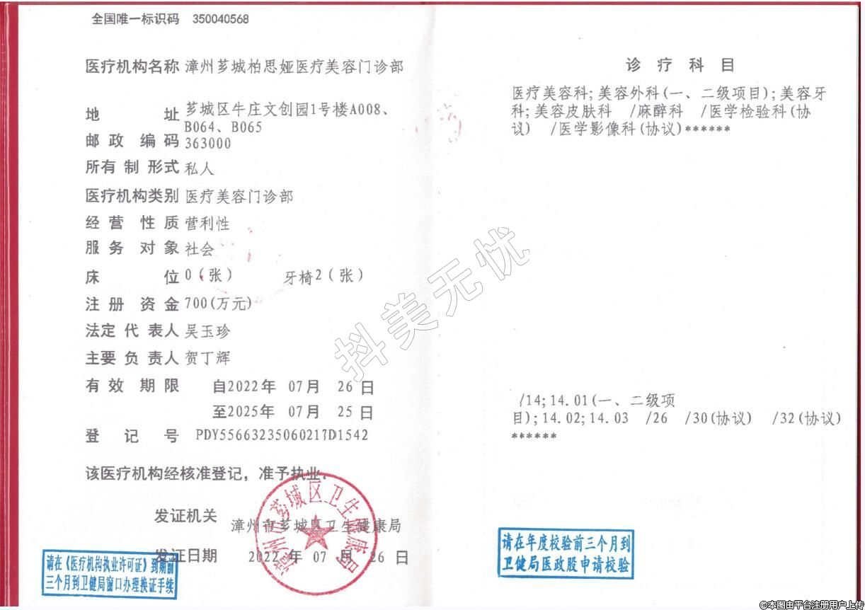 醫(yī)療機構名稱:漳州薌城柏思婭醫(yī)療美容門診部