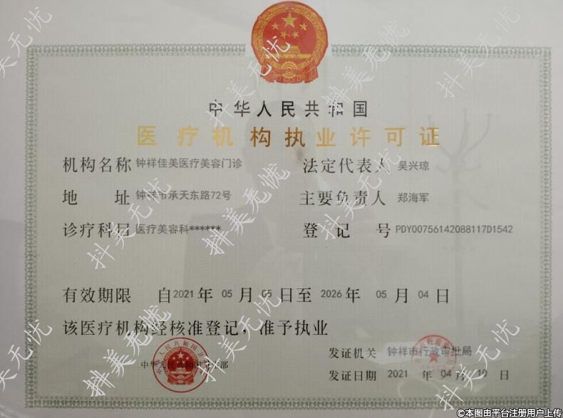 機構名稱:鐘祥佳美醫(yī)療美容門診