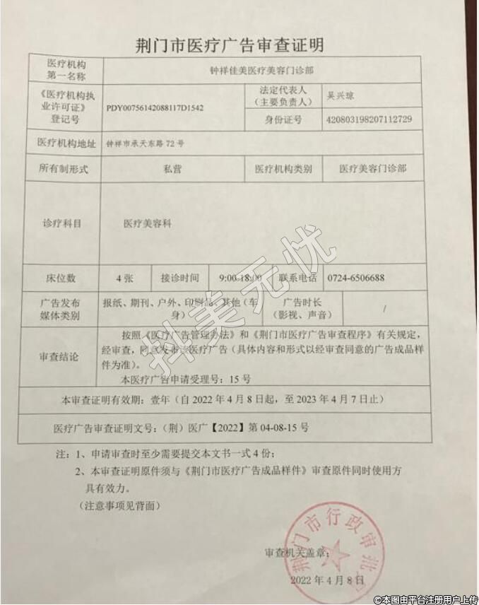 發(fā)證機關:鐘祥市行政審批局