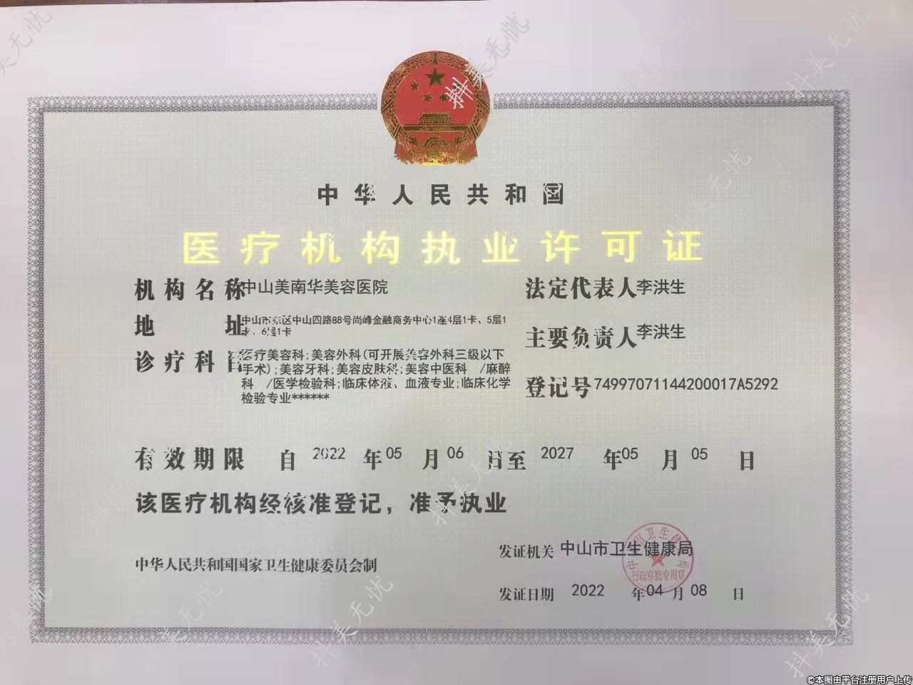 機構(gòu)名稱:中山美南華美容醫(yī)院