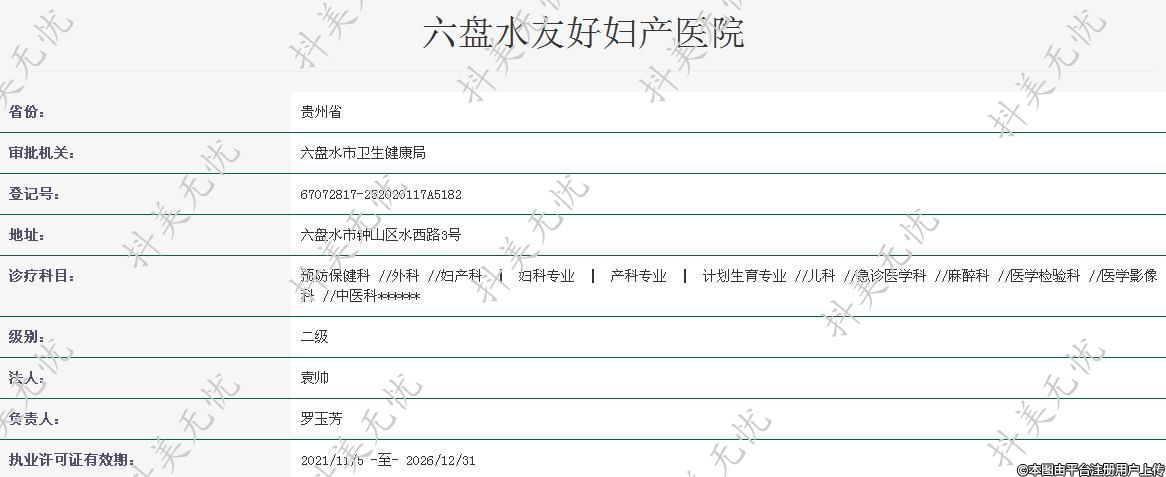 機(jī)構(gòu)名稱:六盤水友好婦產(chǎn)醫(yī)院