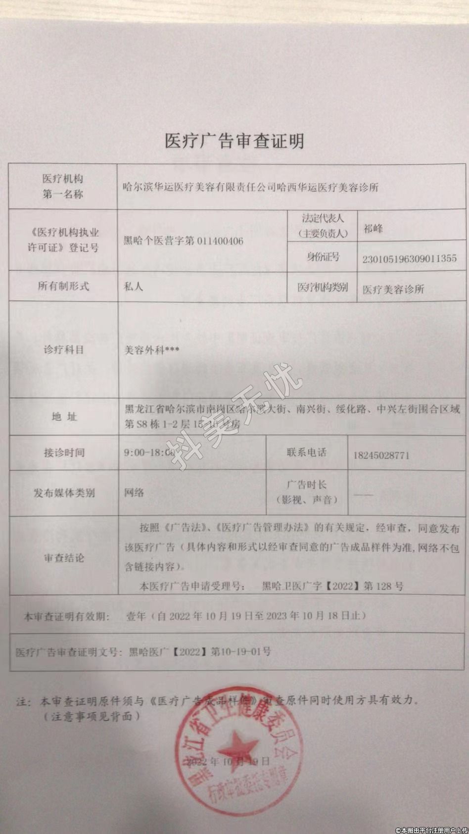 機構(gòu)名稱:哈爾濱華運醫(yī)療美容有限責任公司哈西華運醫(yī)療美容診所
