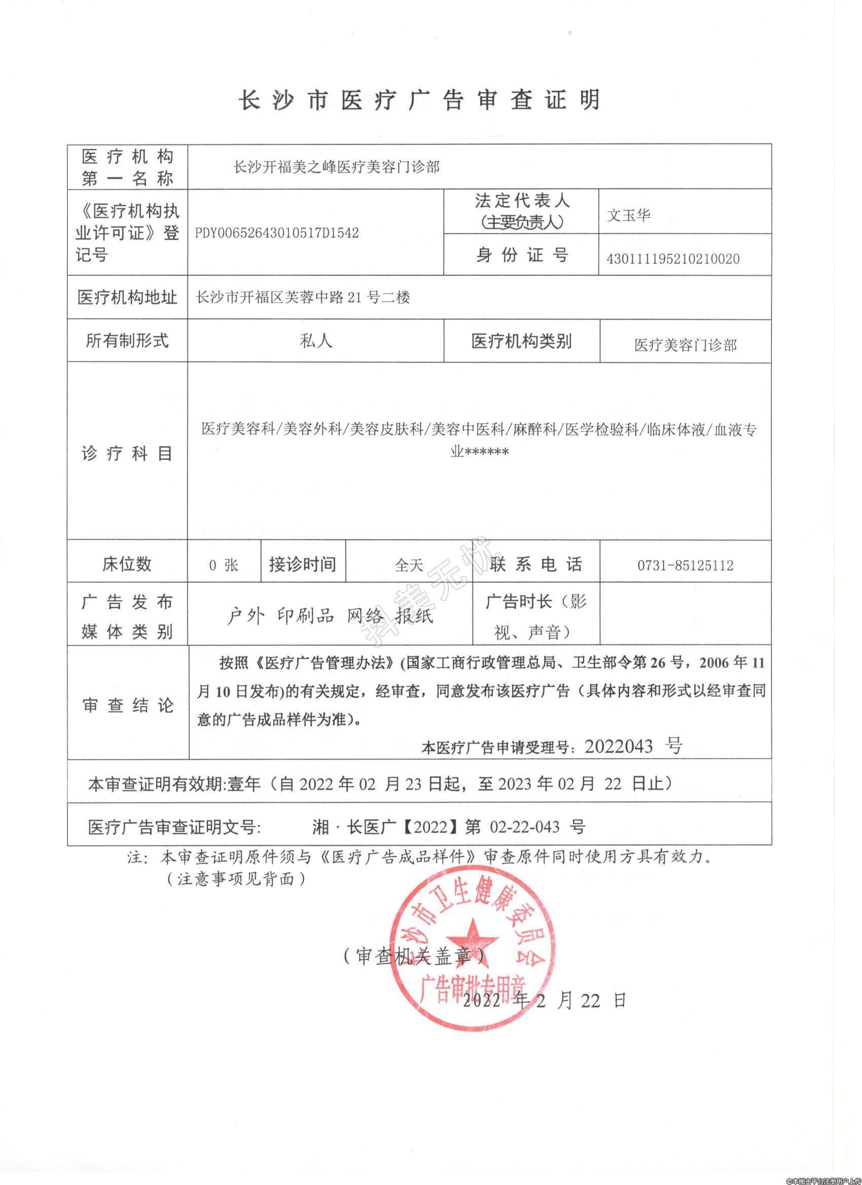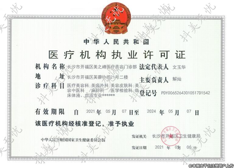 機構(gòu)名稱:長沙市開福區(qū)美之峰醫(yī)療美容門診部