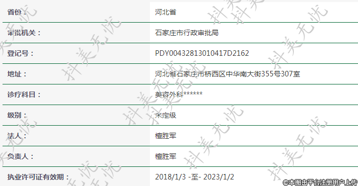 執(zhí)業(yè)許可證有效期:2018/1/3 -至- 2023/1/2