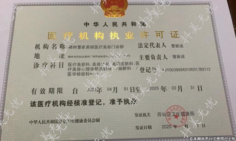 機(jī)構(gòu)名稱(chēng):郴州曹家易麗醫(yī)療美容門(mén)診部
