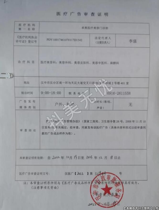 機構(gòu)名稱:漢中卓美整形外科門診部