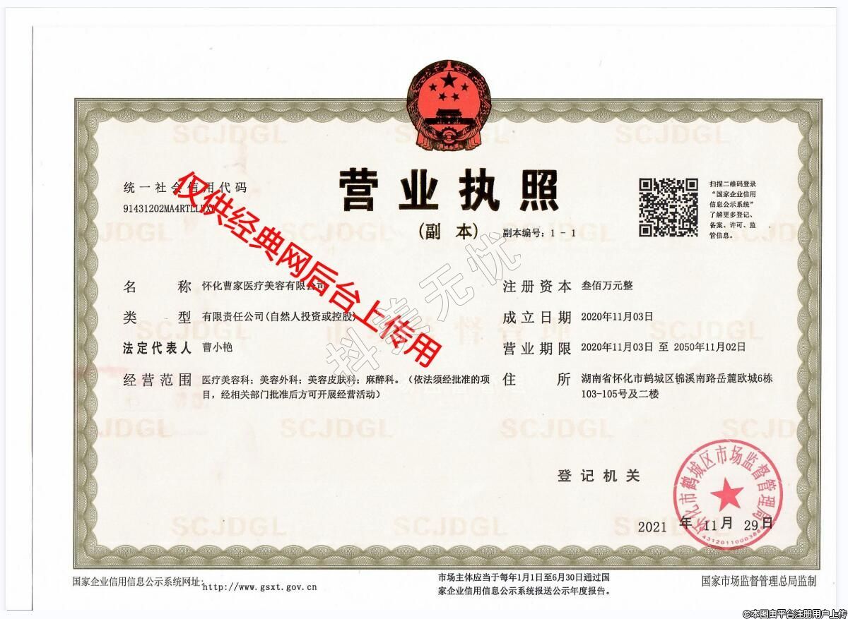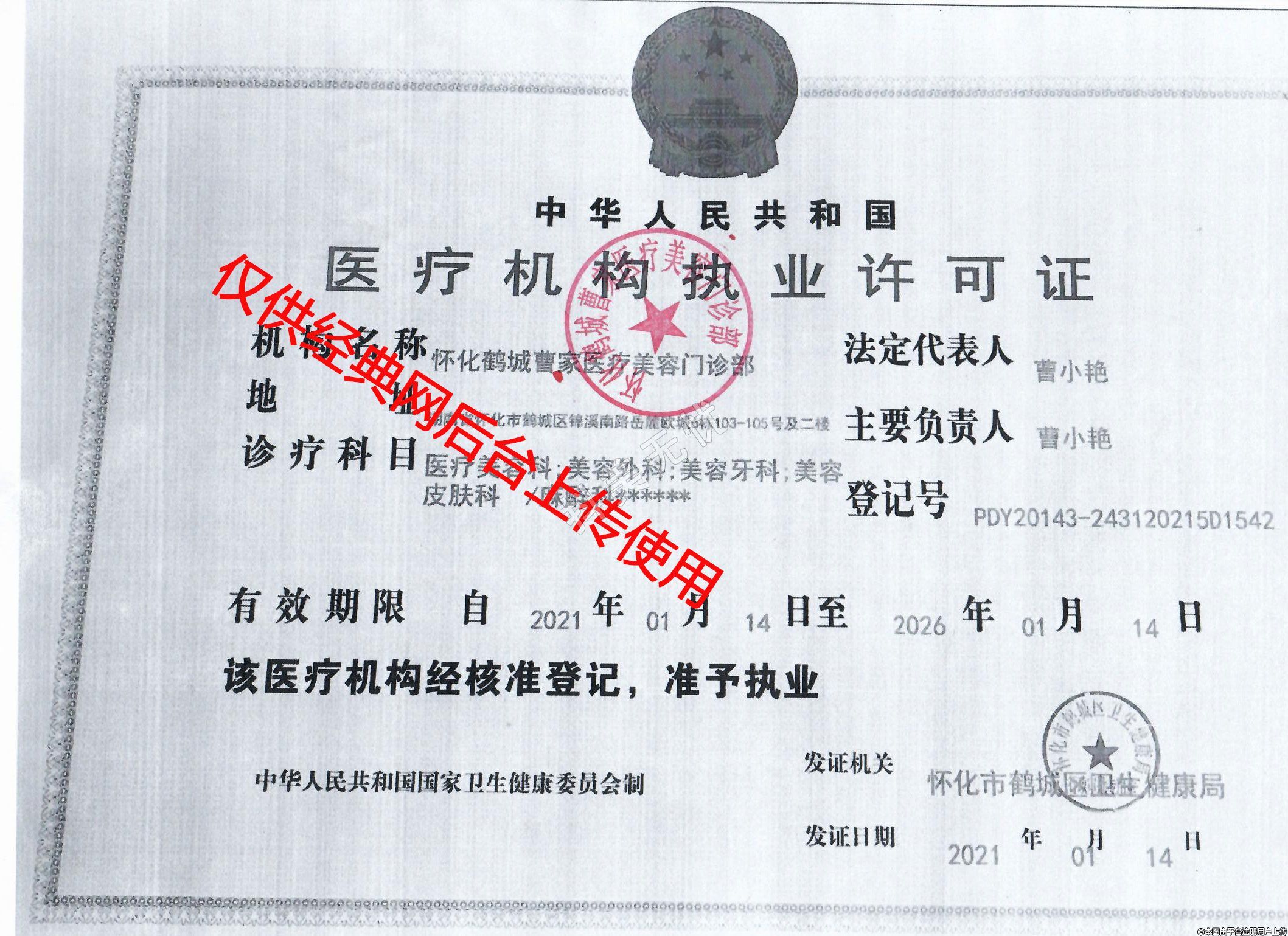 醫(yī)療機(jī)構(gòu)名稱:懷化鶴城曹家醫(yī)療美容門診部