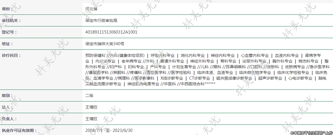 執(zhí)業(yè)許可證有效期:2008/7/1 -至- 2023/6/30